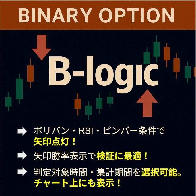 「B_logic」は、以下の3つのテクニカル条件を組み合わせて、反転の兆しを矢印で表示:- ボリンジャーバンド(±σラインで反転検出)