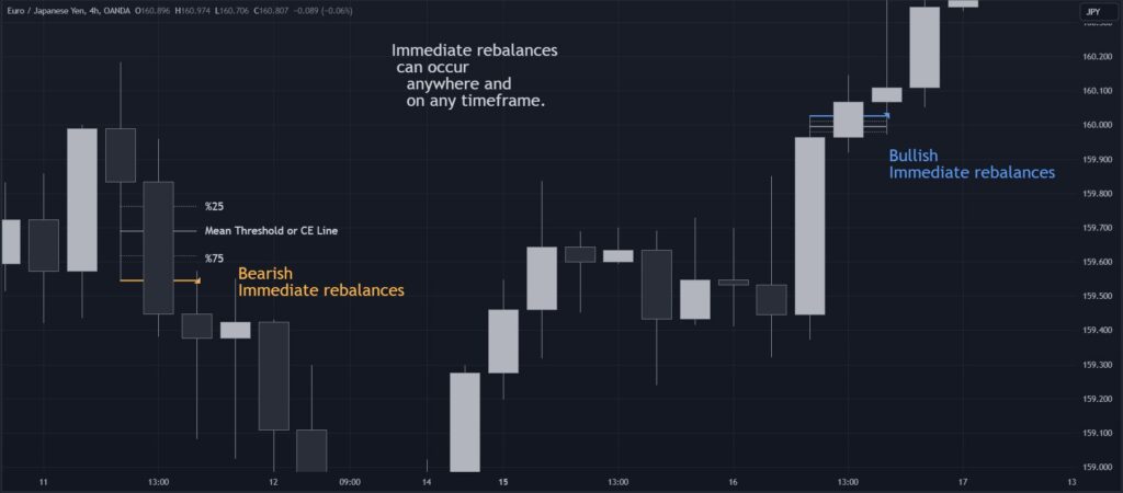 即時リバランスの後、期待されるのは2つの拡張キャンドルが続くことであり、そうでなければ即時リバランスは失敗と見なされます。失敗した即時リバランスと成功した即時リバランスの両方は、文脈内で考慮されると、取引において重要なサインとなることを強調することが重要です。