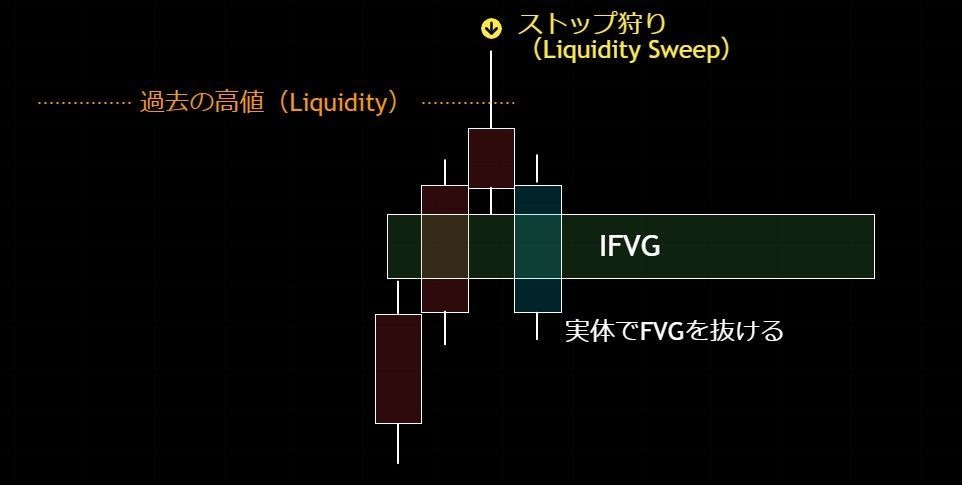 大きく上昇して即急落。この動きがIFVGという形を作ります