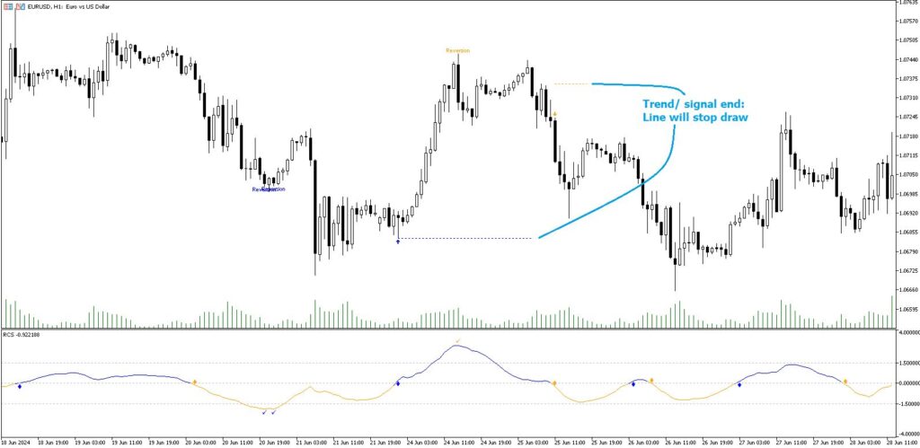 視覚的マーカーとラベルは、オシレーターが平均回帰またはトレンドの変化を示唆する際に示され、主要な市場の転換点を特定するのに役立ちます。