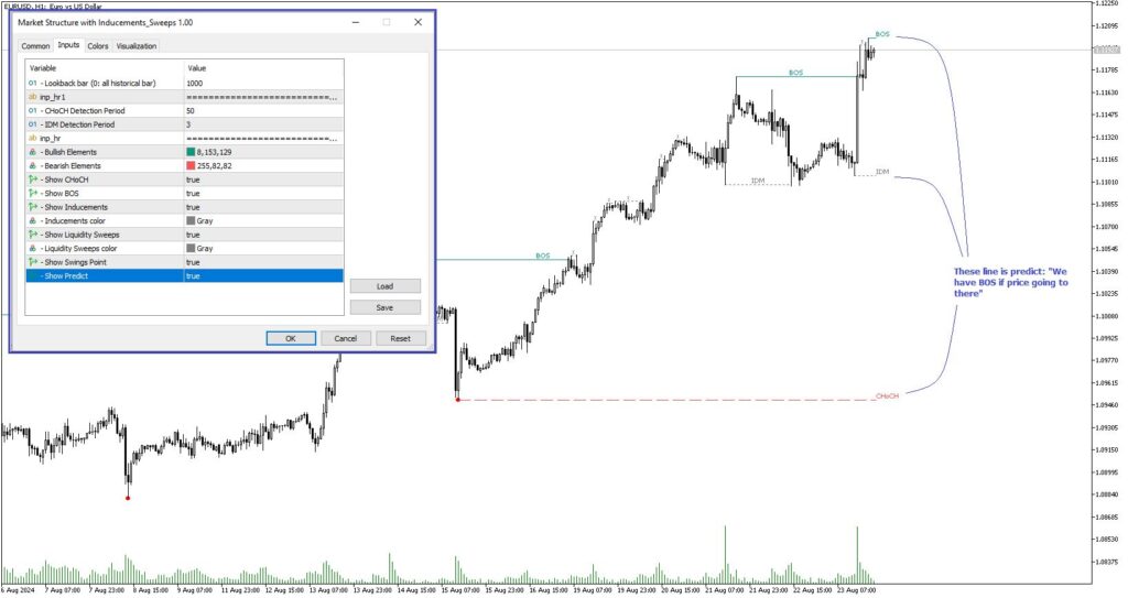- CHoCH、BOS、IDM、スイープおよび予測ラインの表示設定