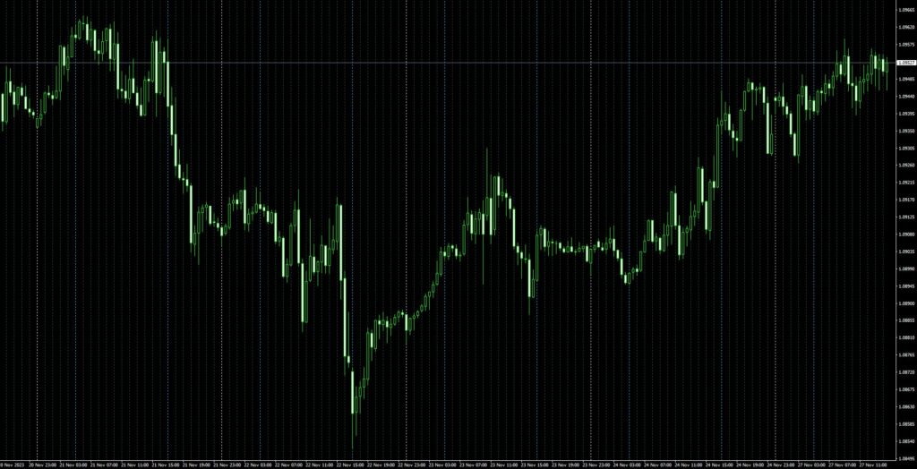 H1以下の時間足のチャートに0時や1時など、1時間毎に設定した線種、色の垂直線を表示します。