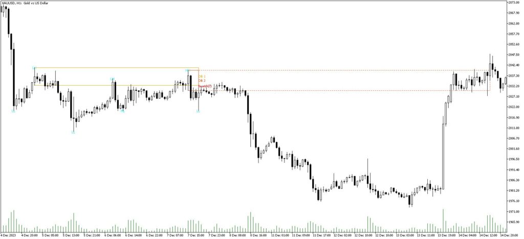 インジケーターをチャートに追加した後、トレーディングセットアップの形成を待つ必要があります。「タイムフレーム」と「ピボット期間」を変更することで、さまざまなトレーディングポジションを観察できます。一般的に、「タイムフレーム」と「ピボット期間」が高いほど、形成されたセットアップの有効性が高くなります。