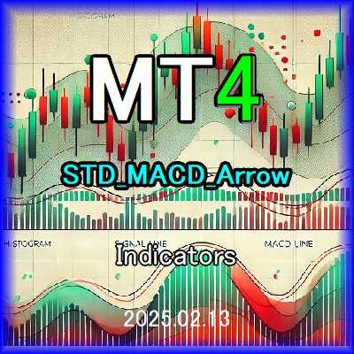 STD_MACD_Arrow は、MACD(移動平均収束拡散法) を基にした 矢印シグナル を表示する MT4 用カスタムインジケータです。価格のトレンド転換を示唆するために、MACD のベースラインとシグナルラインの関係を用いて、BUY(買い)・SELL(売り)シグナル を表示します。