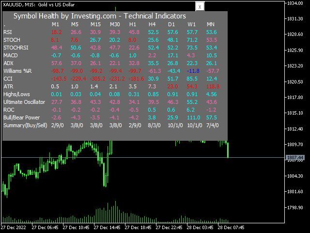 Inspired investing.com テクニカルインディケーター、このインディケーターは、以下のインディケーターを合成することにより、シンボルの包括的なビューを提供します: