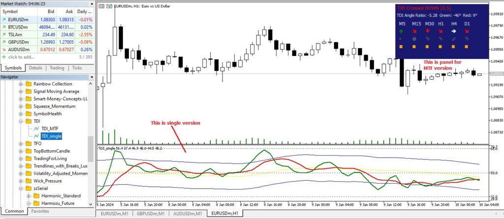 4. 価格アクションとTDIが一致する場合は取引を開始します。