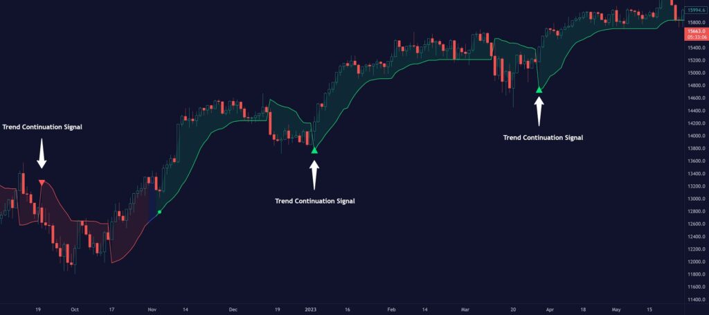 AIアルゴリズムは、ボリュームスーパートレンドの色付けにおける基本的な要素です。この統合は、スーパートレンドの固有の特性を保持しながらトレンドを予測する手段として機能します。これらの重要な特徴を維持することで、AI強化ボリュームスーパートレンドは、トレーダーがトレンド継続シグナルをより正確に特定し、活用できるようにします。